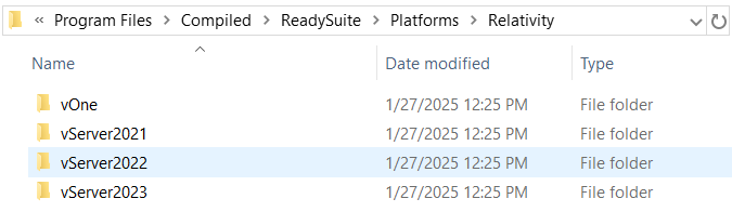 - In the installation folder for ReadySuite, select Platforms > Relativity, and select the version of Relativity you to enable to use the username and password option for connection.