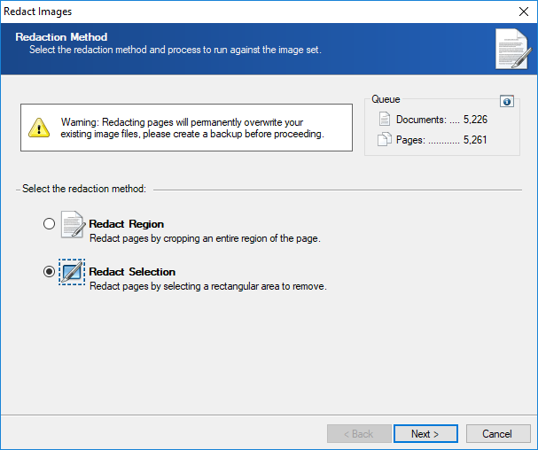 Note: Existing files will be overwritten during the redaction process. Please create a backup before proceeding.