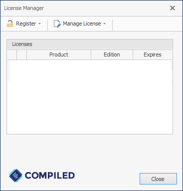 - On the License Manager dialog box Register drop down list, select Install Serial.